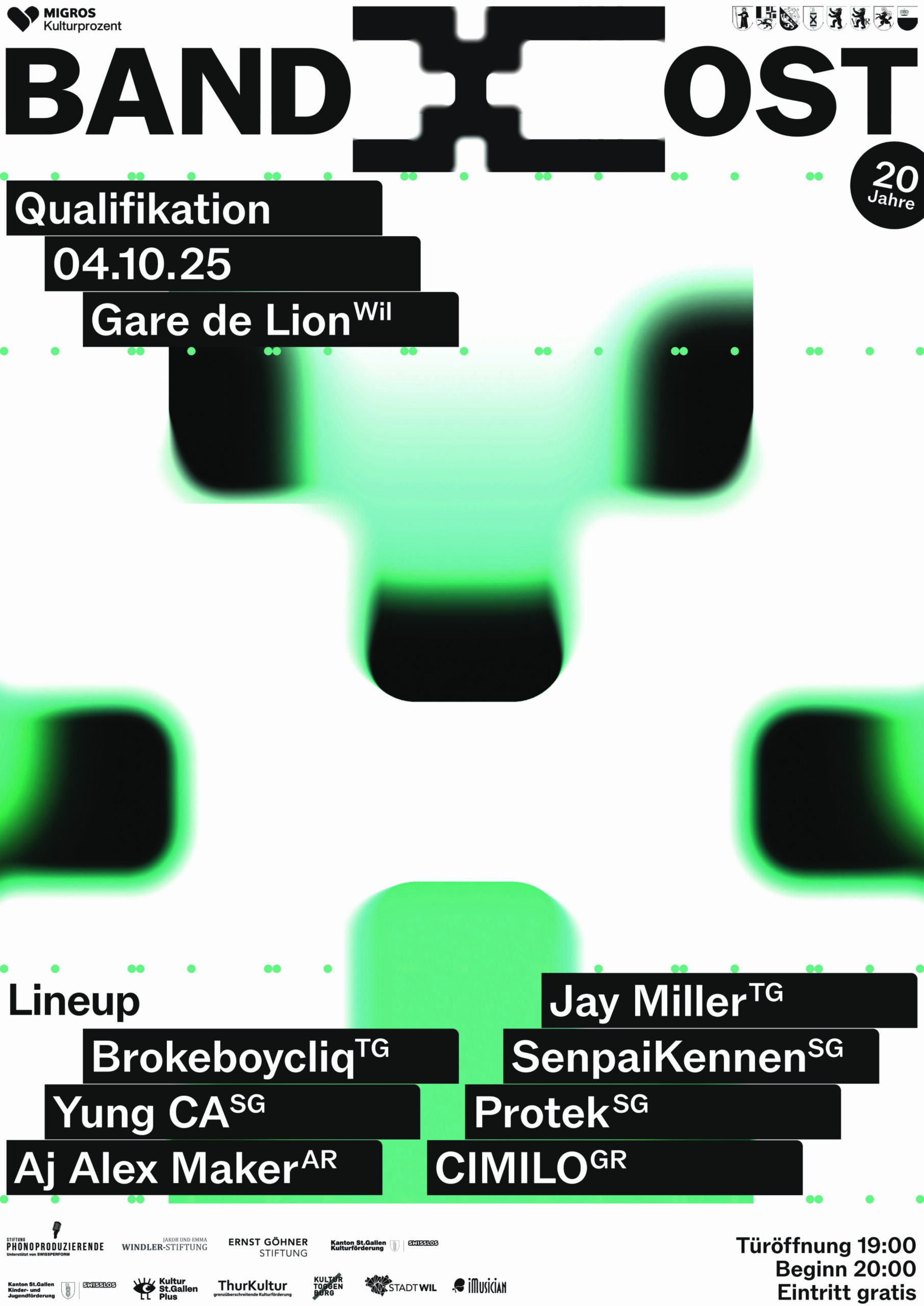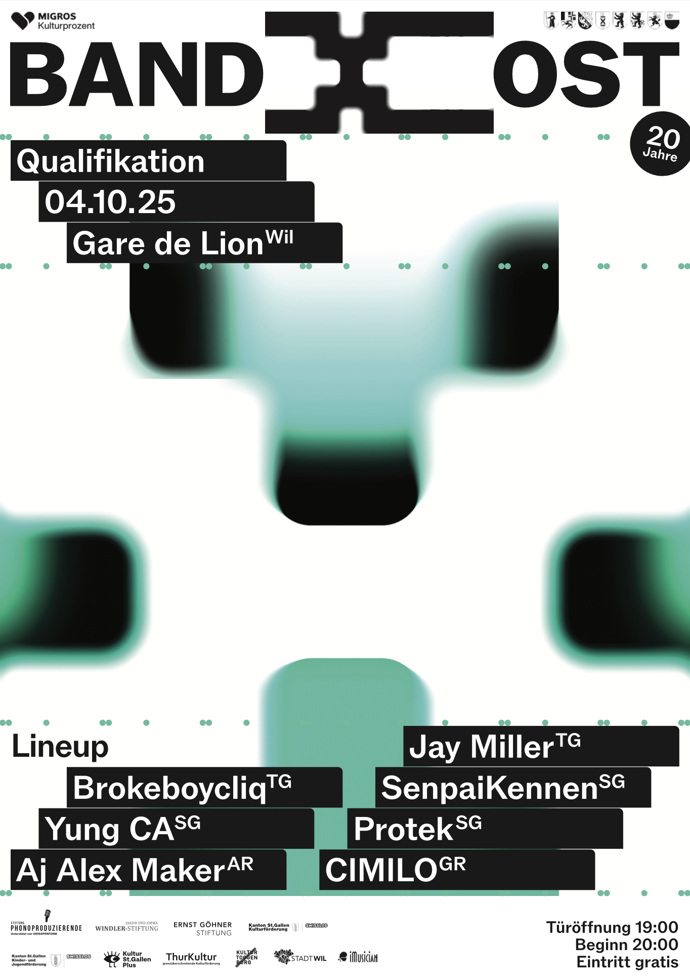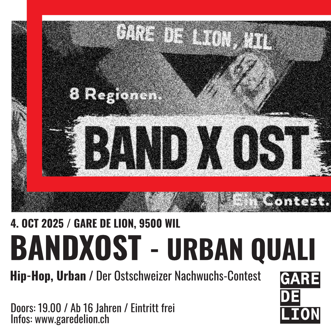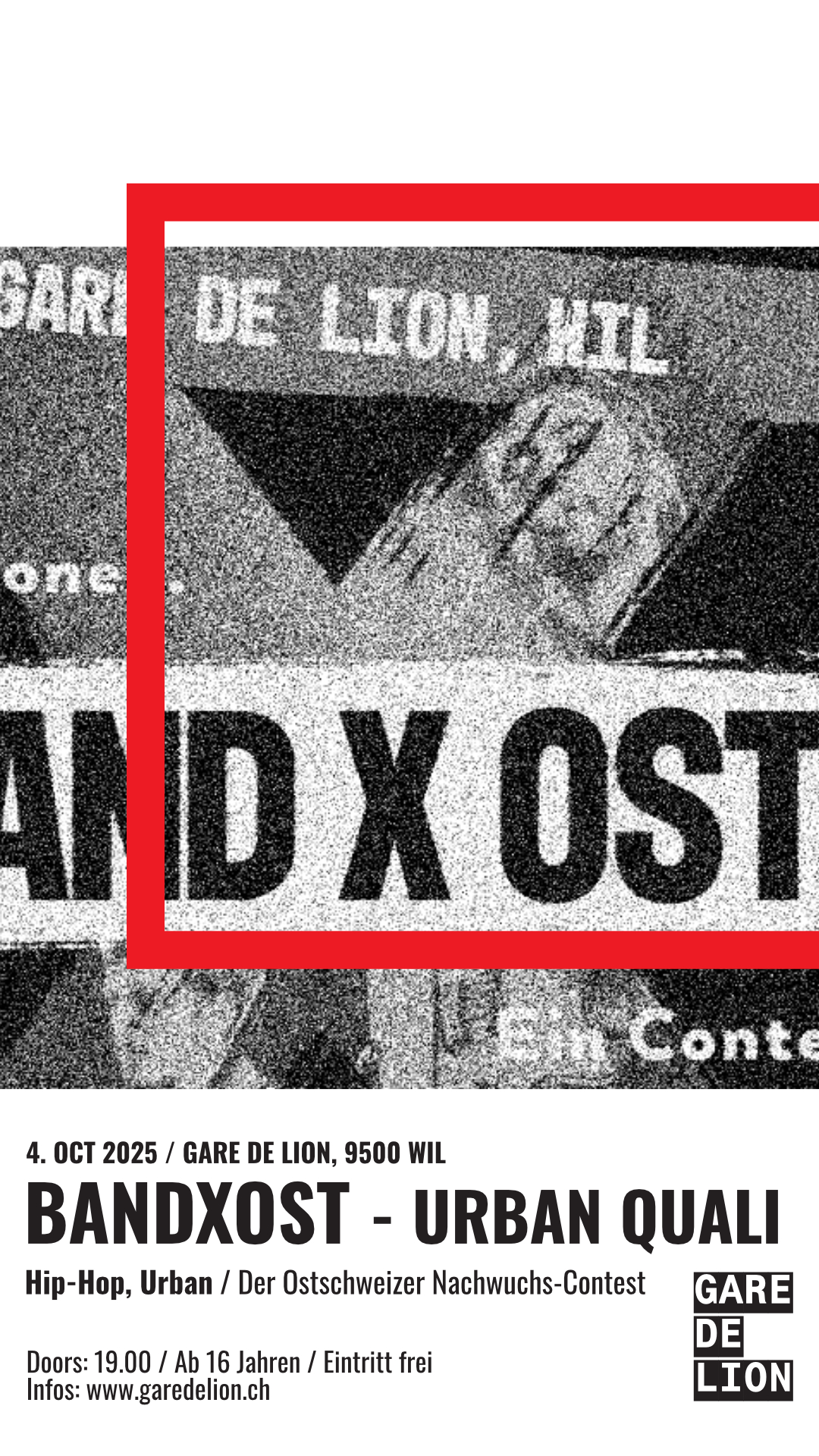Beginn um 19 Uhr // Alle Infos unter www.bandxost.ch // Eintritt frei // 16+ (jüngere nur in Begleitung einer erziehungsberechtigten Person)