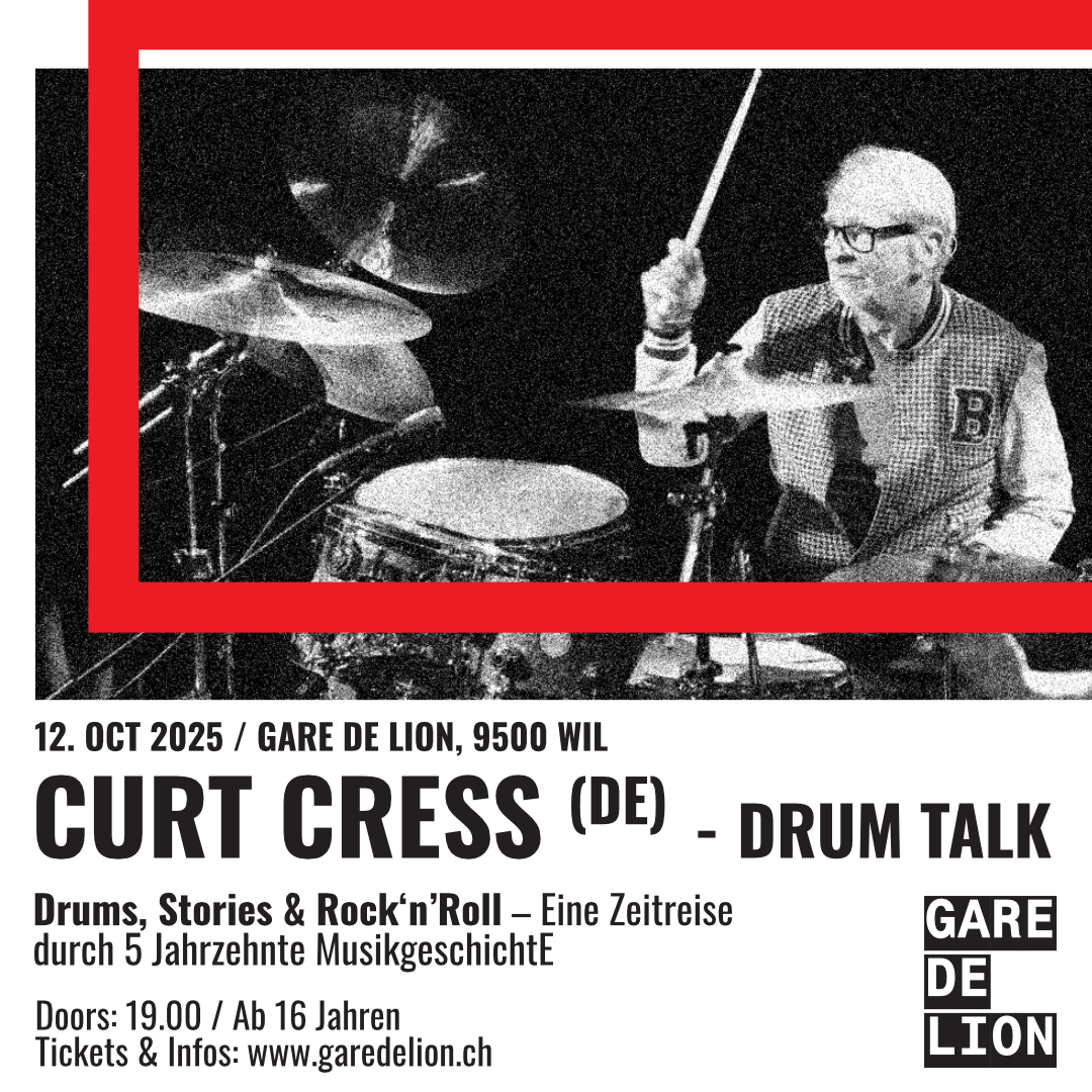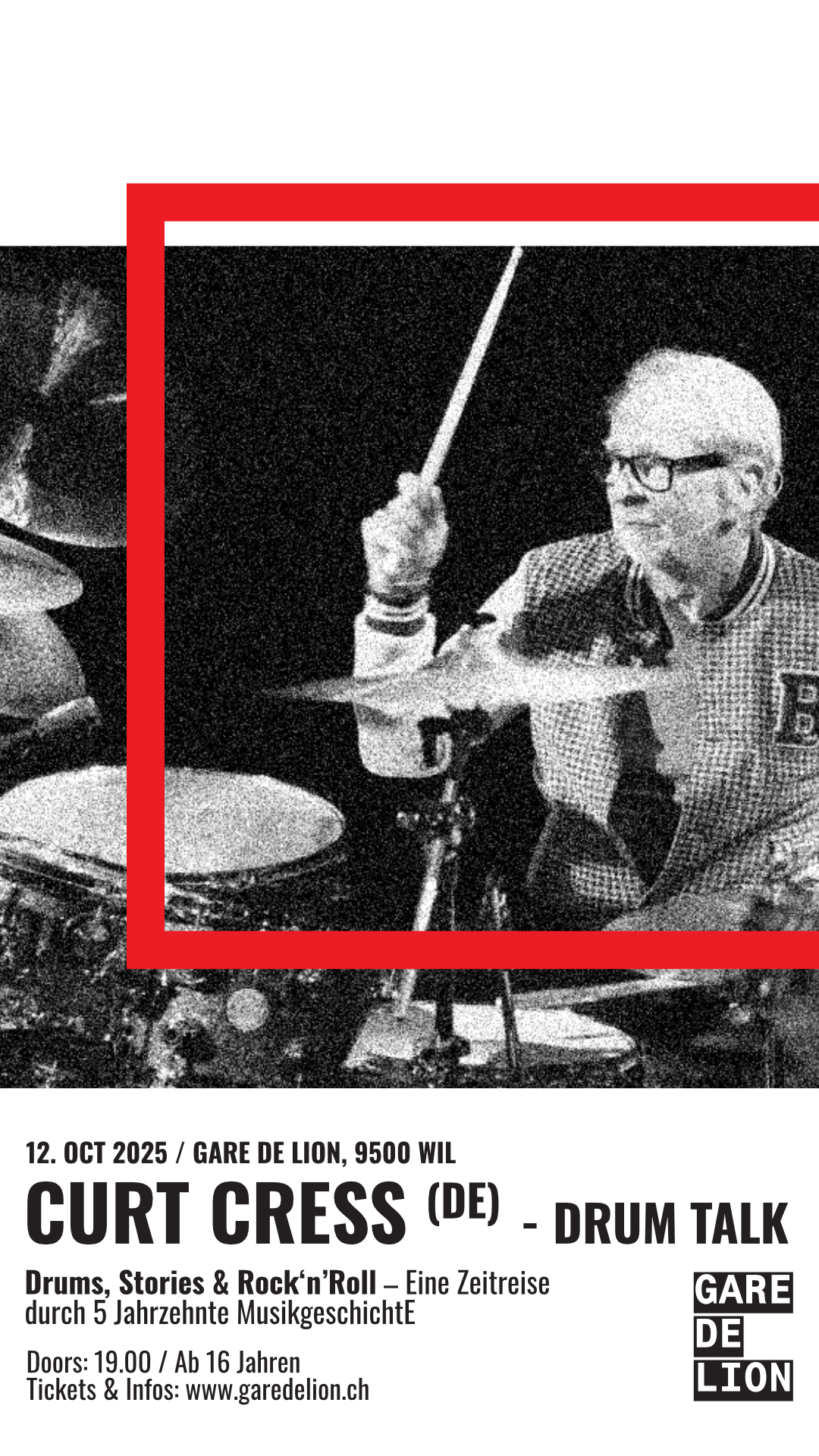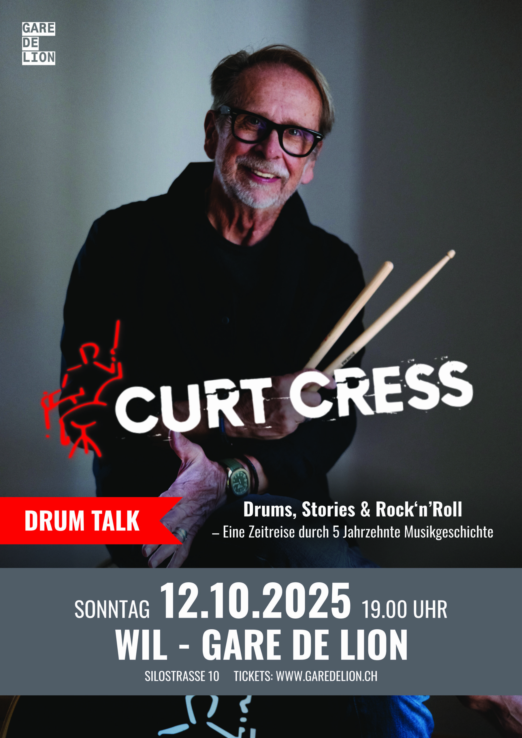 Curt Cress ist eine Schlagzeug-Legende. Und hier erzählt er seine Geschichte – von Ike & Tina Turner bis Udo Lindenberg. Der „Drumtalk“ ist ein Live-Behind-The-Scenes und reale Musikgeschichte der 60er, 70er, 80er, 90er.