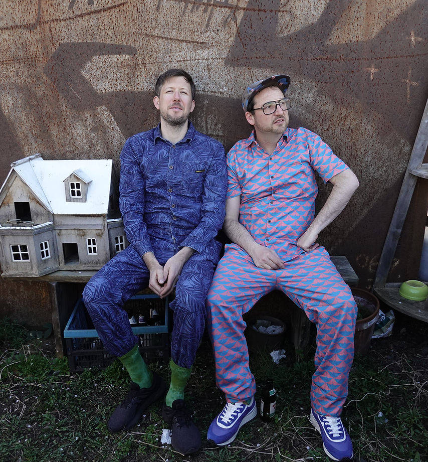 Da sitzen sie, Harry Hustler (Stefan Breitenmoser) und Otto von Ohr (Florian Wäspe), in ihren lustig farbigen, nein, Anzüge sind es ja dann doch nicht, Kleidungsstücke vielleicht, an ihren Geräten und dem Buch. Kolumnen und elektronische Klangstickereien. Warum nicht! Und bereits beim ersten Drehen an Knöpfen wird klar, Otto von Ohr hat einiges drauf: verspielte, sanft getimte, sich überschlagende Rhythmusmuster, Geräusch und neue Beats, es entstehen eigentümliche Klanglandschaften. Danach erste Texte. Die Themen reichen von Goldfischen, die an Walti Stürm erinnern, über Nanoplastik-Skipisten bis hin zu Eichen, die sich über die Schuhe der Jogger beklagen. Schnell wird klar, es wird ein erfreulicher Abend, scharfsinnig beobachtete Miniaturen über menschliche, tierische und pflanzliche Unzulänglichkeit, übersetzt mit der subversiven Liebe der Worte. Und Schalk. Womit wir wieder bei der Kleidung, resp. beim Namen der Beiden sind: HaHu und OvO. Na dann: Prost!