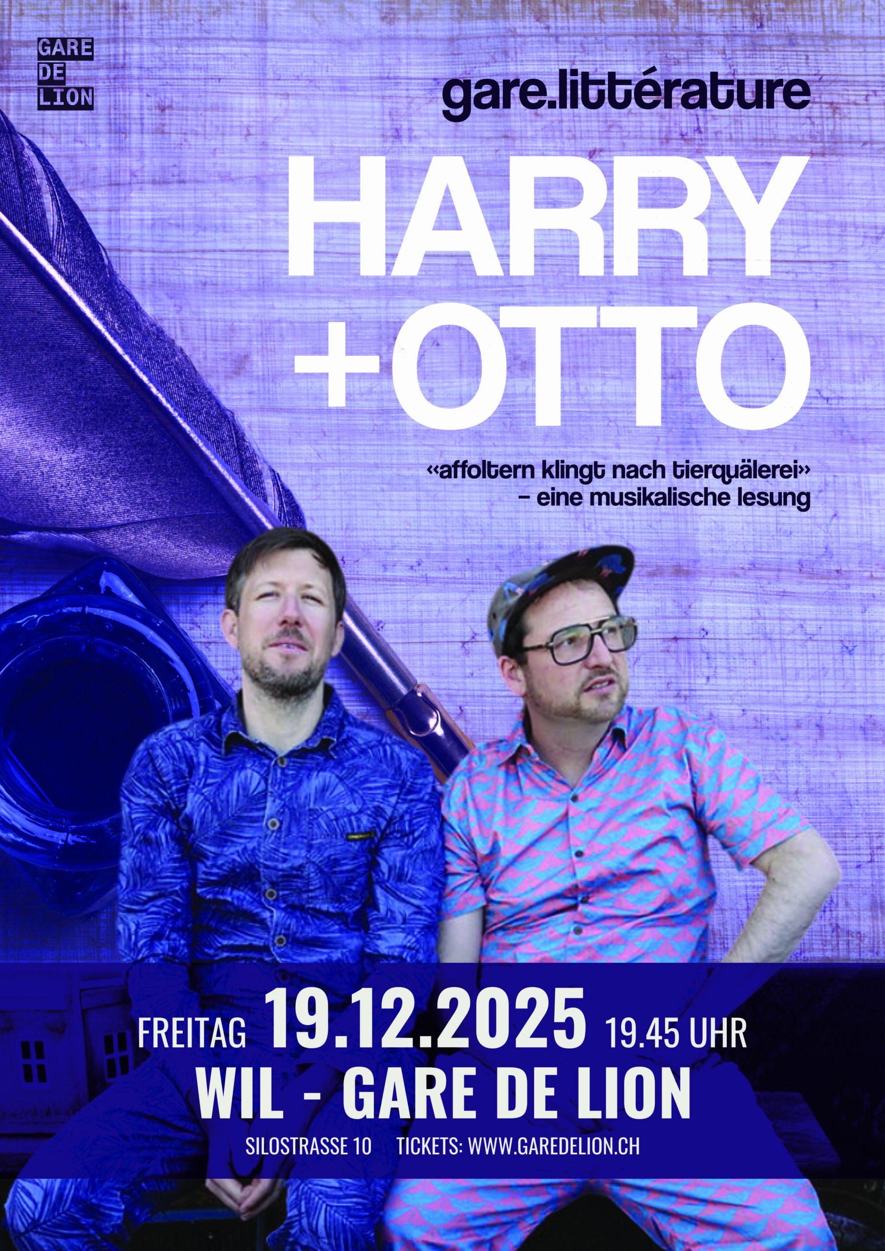 Da sitzen sie, Harry Hustler (Stefan Breitenmoser) und Otto von Ohr (Florian Wäspe), in ihren lustig farbigen, nein, Anzüge sind es ja dann doch nicht, Kleidungsstücke vielleicht, an ihren Geräten und dem Buch. Kolumnen und elektronische Klangstickereien. Warum nicht! Und bereits beim ersten Drehen an Knöpfen wird klar, Otto von Ohr hat einiges drauf: verspielte, sanft getimte, sich überschlagende Rhythmusmuster, Geräusch und neue Beats, es entstehen eigentümliche Klanglandschaften. Danach erste Texte. Die Themen reichen von Goldfischen, die an Walti Stürm erinnern, über Nanoplastik-Skipisten bis hin zu Eichen, die sich über die Schuhe der Jogger beklagen. Schnell wird klar, es wird ein erfreulicher Abend, scharfsinnig beobachtete Miniaturen über menschliche, tierische und pflanzliche Unzulänglichkeit, übersetzt mit der subversiven Liebe der Worte. Und Schalk. Womit wir wieder bei der Kleidung, resp. beim Namen der Beiden sind: HaHu und OvO. Na dann: Prost!