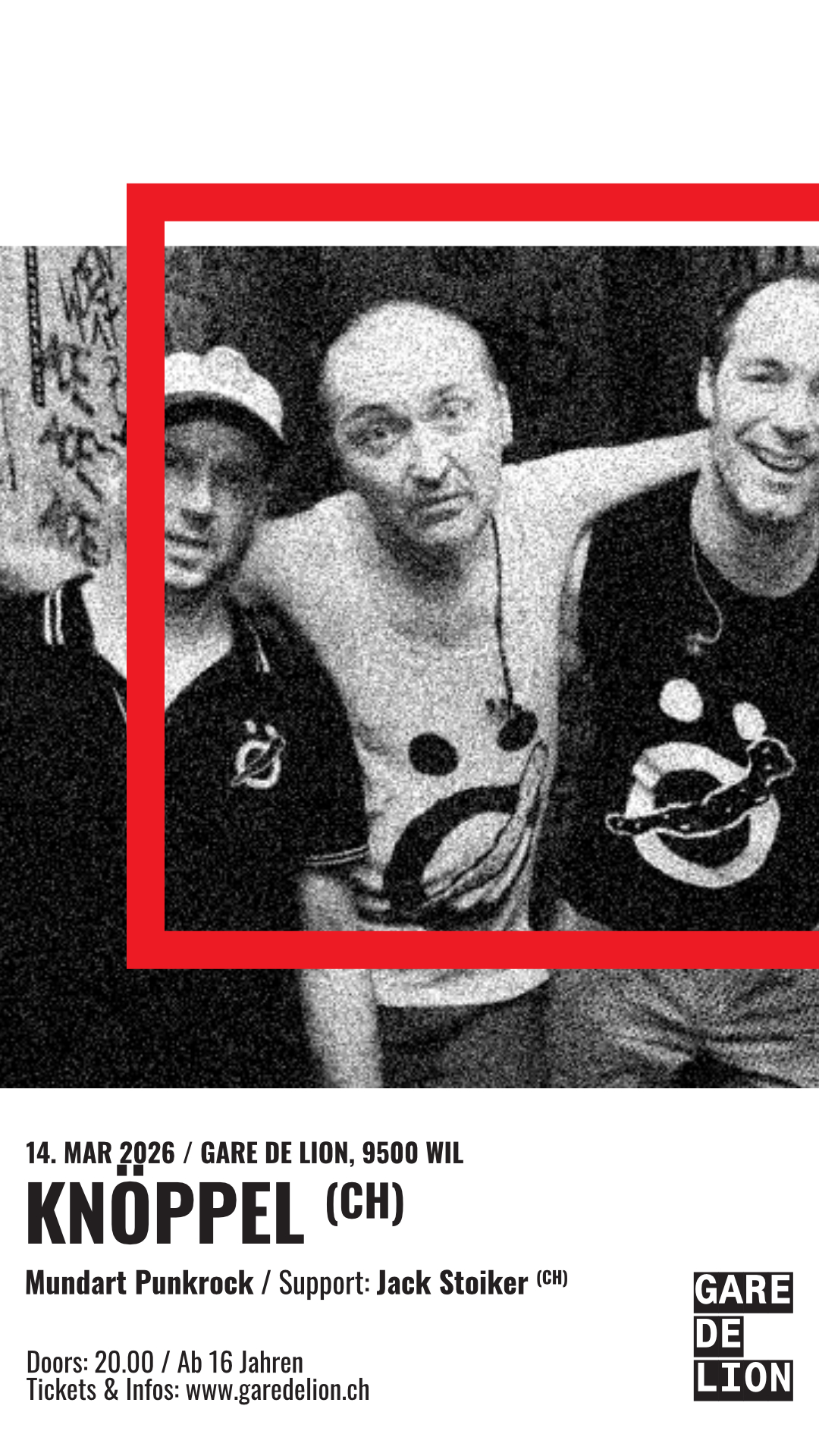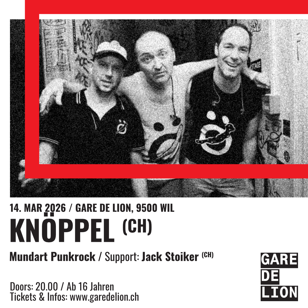 Türöffnung, Abendkasse und Barbetrieb ab 20:00 Uhr // Konzerte ab ca. 20:45 Uhr // Ticket im Vorverkauf 28 CHF, Eintritt an der Abendkasse 30 CHF, GdL-Mitglieder 22 CHF // 16+ (jüngere Gäste nur in Begleitung einer erziehungsberechtigten Person)