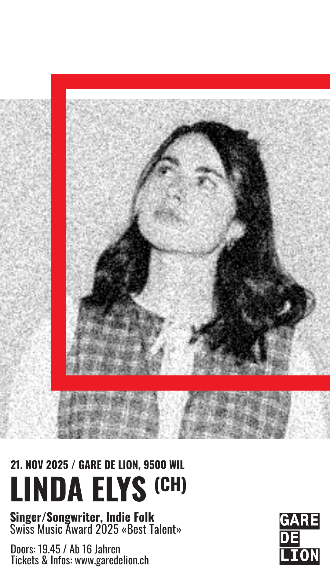 Linda Elys, die junge Schweizer Singer‑Songwriterin, sorgte im Herbst 2023 mit ihrem Debüt‑Hit «House On Fire» für Furore – er wurde zur meistgespielten Schweizer Single im Radio 2024 und erreichte Platz 1 der Airplay‑Charts. Kurz darauf veröffentlichte sie ihre erste EP «Maggie», die persönlich, authentisch und gefühlvoll Geschichten vom Erwachsenwerden. Im Frühjahr 2025 ging Linda auf ihre erste Club‑Tour quer durch die Schweiz und begeisterte Fans in der ganzen Schweiz mit ihrer Musik. Noch auf Tour erreichte ihre Hit-Single Gold-Status. Im Mai 2025 konnte sie sich dann einen weiteren Traum erfüllen mit dem Gewinn ihres ersten Swiss Music Award als «Best Talent», womit sie ihren Status als eine der spannendsten Neuentdeckungen der Schweizer Musikszene nur unterstrich.
