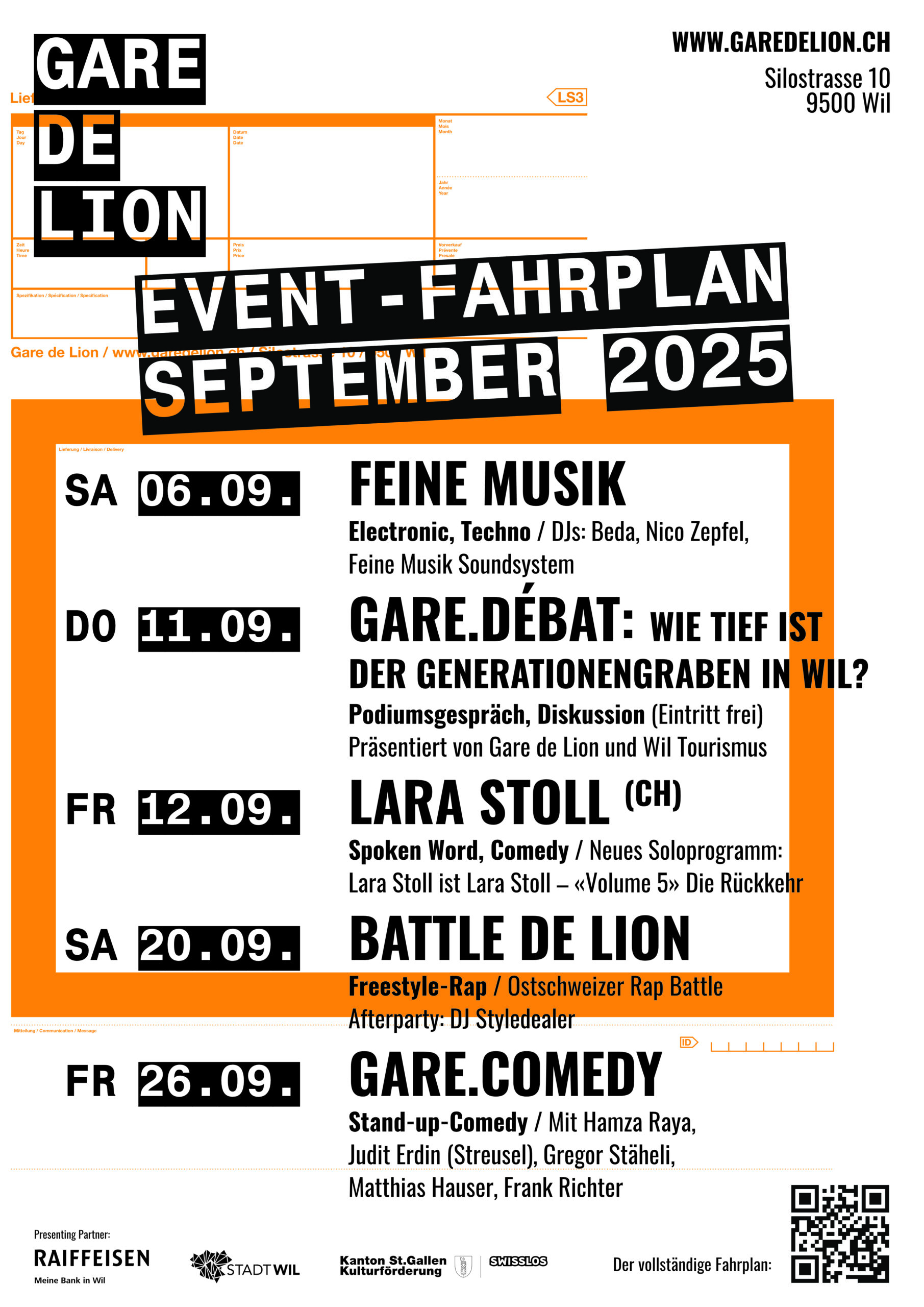 > DO 11.09. GARE.DÉBAT: WIE TIEF IST DER GENERATIONENGRABEN IN WIL? – Podiumsgespräch, Diskussion (Eintritt frei) / Präsentiert von Gare de Lion und Wil Tourismus